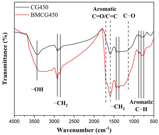 FTIR spectra of CG450 (black line) and BMCG450 (red line).
