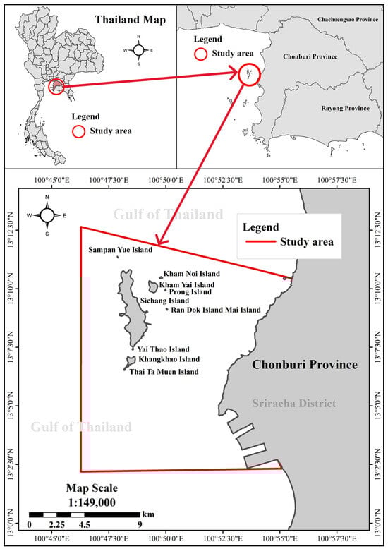 - Coastal Resources Conservation Division. The Project Establishes a Stakeholder Participation Process and Creates a Plan to Define the Use Zone for Marine and Coastal Resources. Ready to Prepare a Utilization Map and Spatial Management Plan. (Koh Sichang Area Chonburi Province); Faculty of Marine Technology, Burapha University: Saen Suk, Thailand, 2023. [Google Scholar]
