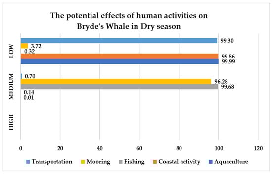 The graph illustrates the risk levels of human activities on Bryde’s whale during the dry season.