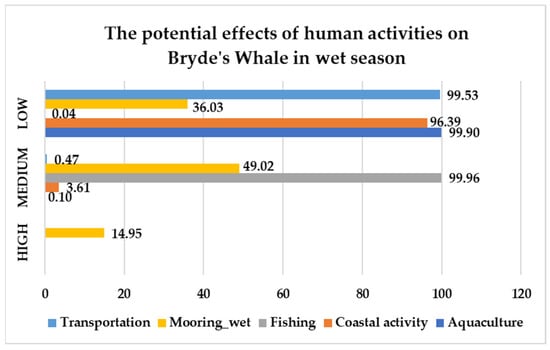 The graph illustrates the risk levels of human activities on Bryde’s whale during the wet season.