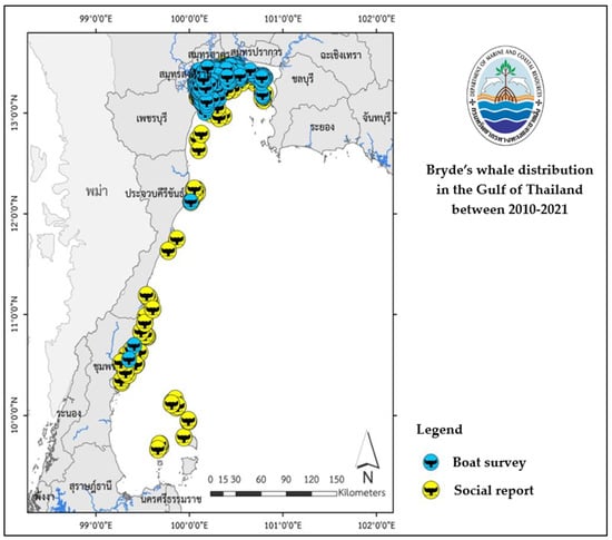 Map of Bryde’s whale distribution in the Gulf of Thailand (2010–2021) [5].