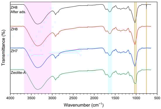 - Asrori, M.R.; Santoso, A.; Sumari, S. Proofing the Presence of Metal Oxide Impregnated into Zeolite A without Calcination: XRD and FTIR Studies. Case Stud. Chem. Environ. Eng. 2024, 9, 100676. [Google Scholar] [CrossRef]