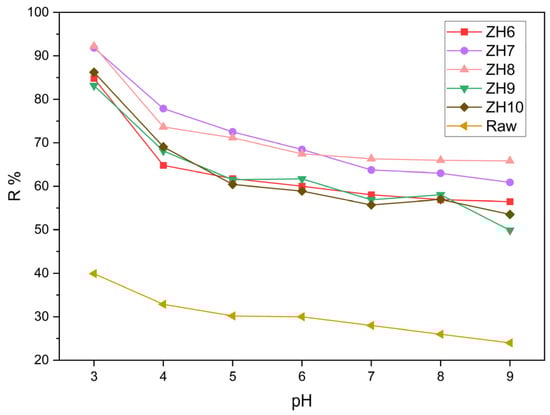 3.2.1. Effect of pH on Removal Efficiency
