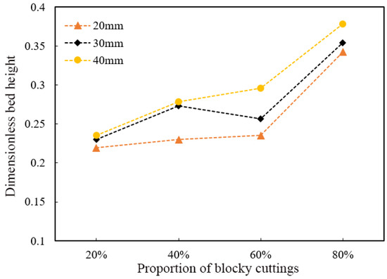 Variation of dimensionless cuttings bed height with blocky cuttings size.