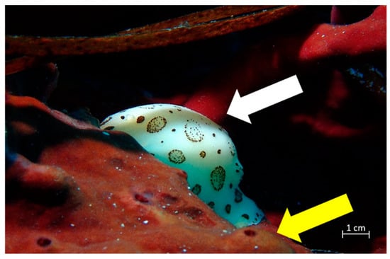 - Gemballa, S.; Schermutzki, F. Cytotoxic Haplosclerid Sponges Preferred: A Field Study on the Diet of the Dotted Sea Slug Peltodoris atromaculata (Doridoidea: Nudibranchia). Mar. Biol. 2004, 144, 1213–1222. [Google Scholar] [CrossRef]