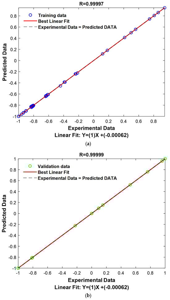 The dataset was preprocessed by normalizing all variables to the range [−1, 1]. This normalization step ensured that the variables were on the same scale, reducing the risk of any single variable dominating the training process. Once normalized, the dataset was divided into three subsets: 70% for training, 15% for validation, and 15% for testing. The training set was used to construct the model, while the validation set was employed for tuning hyperparameters, preventing overfitting. The unseen test set was reserved for the final evaluation of the model to ensure an unbiased assessment of its performance on unseen data.