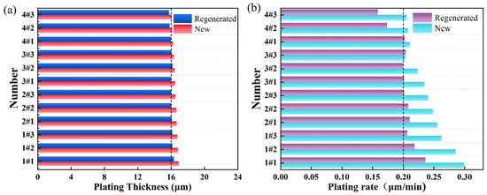 Plating performance test. ((a) Plating thickness; (b) plating rate).