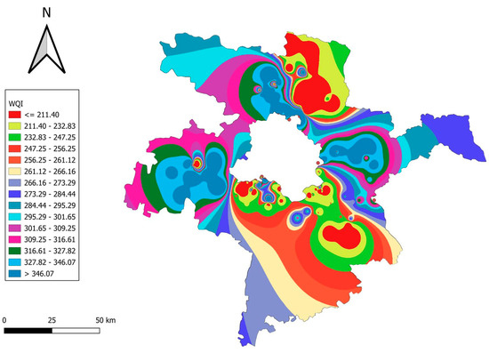 - WQI calculation: The WQI was computed using the following Equation (2):