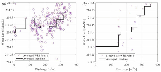 Steady-state cases. (a) Average WSE of each flow from transient curve. (b) Average WSE manually selected steady-state cases.