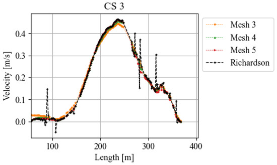 Richardson extrapolated values for velocities (magnitude) at cross section 3 in Figure 1.