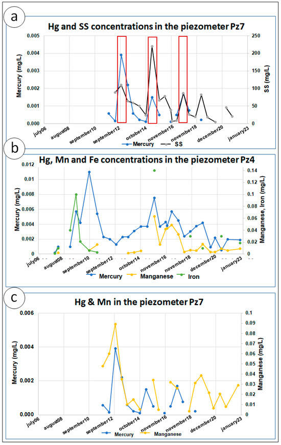 6.4. Evolution of Hg-SS-Metallic Trace Elements (Mn, Fe)