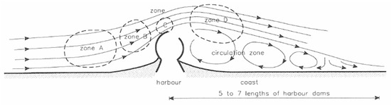 Converging and diverging tidal currents near IJmuiden harbour dams (Van Rijn, 1995, in [33]).