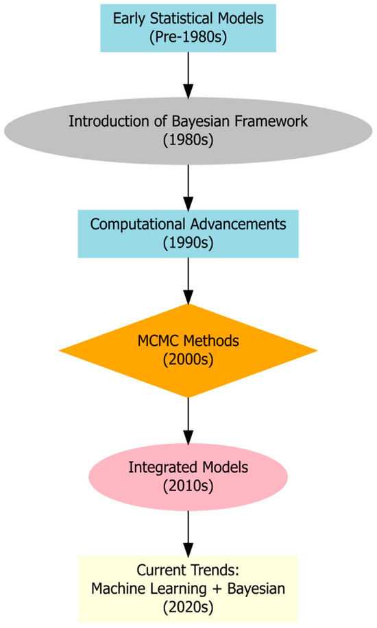 The following section traces the evolution of Bayesian methods in hydrology, highlighting key developments from their early theoretical foundations to modern applications in flood-frequency analysis and forecasting, drought prediction, and hydrological modelling.