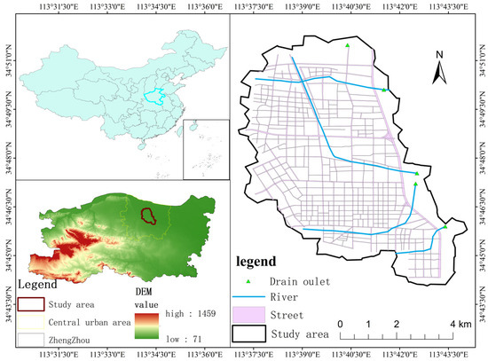 Figure 1, the primary drainage channels in the studied area are four rivers: the Dongfeng Canal, Wei River, Jinshui River, and Xiong’er River. Conversely, the majority of the drainage pipelines in the region are aged and plagued by severe siltation and disease, which causes insufficient drainage capacity in the network. This could easily result in a waterlogging catastrophe during periods of heavy rainfall.