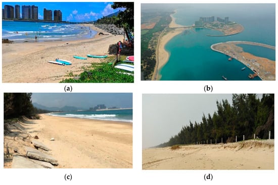 The evolution of the geophysical environment is largely attributed to erosion, and coastal erosion also shapes coastal landforms [1], especially in sensitive areas where sea–land–air interactions occur. The profile changes influenced by dynamic factors such as waves, tides, and winds, as well as terrain, reflect the complex process response mechanisms of beaches [2,3], and the role of human activities in this process is becoming increasingly significant [4,5,6,7,8], including the construction of coastal hardening projects, direct intervention in sand mining, ecosystem destruction such as vegetation clearance, etc.