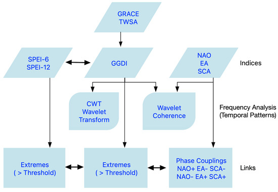 - These relationships indicate that monitoring climate phase interactions using GRACE data can potentially improve long-term drought and flood predictions, offering valuable insights for water resource management and early warning systems. However, it is important to note that while GRACE data can capture the synchronization between climate patterns and hydrological responses, synchronization does not imply causation, and further research is needed to isolate the direct impact of climate patterns from other possible influencing factors.