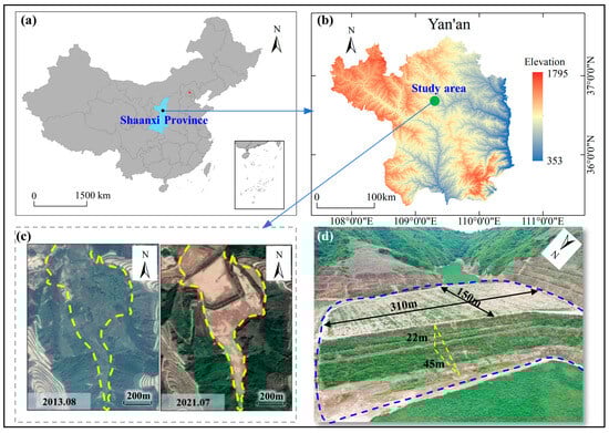 The study area is located in the central Loess Plateau in Yanan City (36°35′11.59″ N, 109°18′45.24″ E), which belongs to a semi-arid monsoon climate zone, with an annual average temperature of 7.7–10.6 °C and annual precipitation of 570.6 mm.