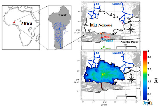 Nokoue lake is in southern Benin between a 6°38′ and 6°50′ north latitude, and a 2°35′ and 2°55′ west longitude. It varies between 150 and 170 km2, respectively, during the low-water period and the high-water period (Figure 1).