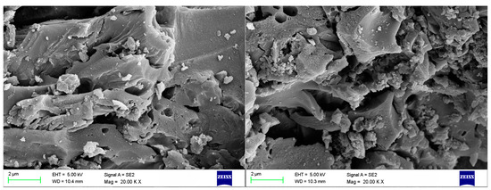 SEM of PAC at 20 KX; left side before adsorption and right side after adsorption.