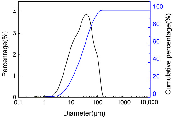 Figure 4 shows the pore size distribution of PAC (<61 μm) used in the experiments. The average and median particle sizes of the PAC were 38 μm and 25 μm, respectively, and most of the PAC was distributed in the range of 20–60 μm.