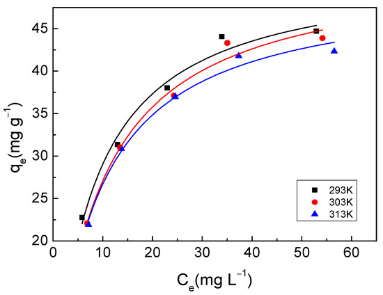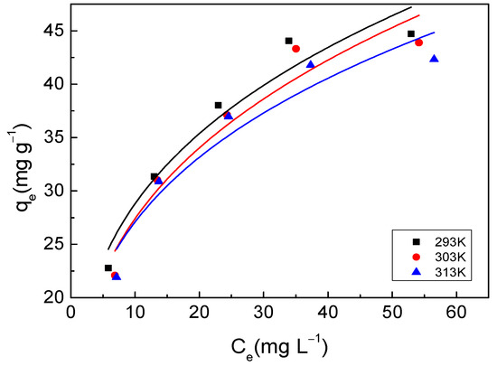 where Kf is the adsorption constant reflecting the adsorption amount (mg g−1) ( L mg−1)1/n, and n is the adsorption constant reflecting the intensity of the adsorption temperature.