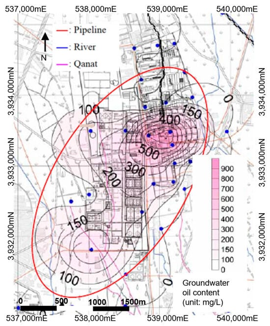 Distribution of oil content in groundwater across the Rey industrial area [16].