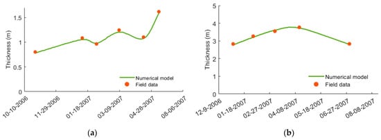 Measuring results of oil layer thickness and ground water level of (a) well 6 and (b) well 53.