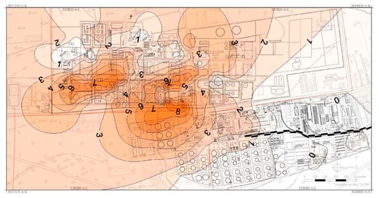 Estimated pollution sources for low-density contamination across the Rey area [16].