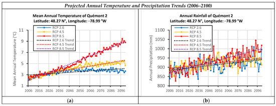 - Canadian Climate Data and Scenarios. Climate change database for the Rouyn region, Québec, Canada. 2022. Available online: https://climate-scenarios.canada.ca/?page=statistical-downscaling (accessed on 15 November 2021).