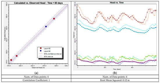 For this study, MODFLOW 2000 [62] was chosen to assess three-dimensional groundwater flow in a porous medium (Figure 6). The groundwater flow partial differential equations were solved using the Bi-Conjugate Gradient Stabilized (Bi-CGSTAB) acceleration technique in Visual MODFLOW. The convergence of the calibrated model’s matrix solver was assessed using head changes of 0.01 m and residual criteria of 0.001 m.