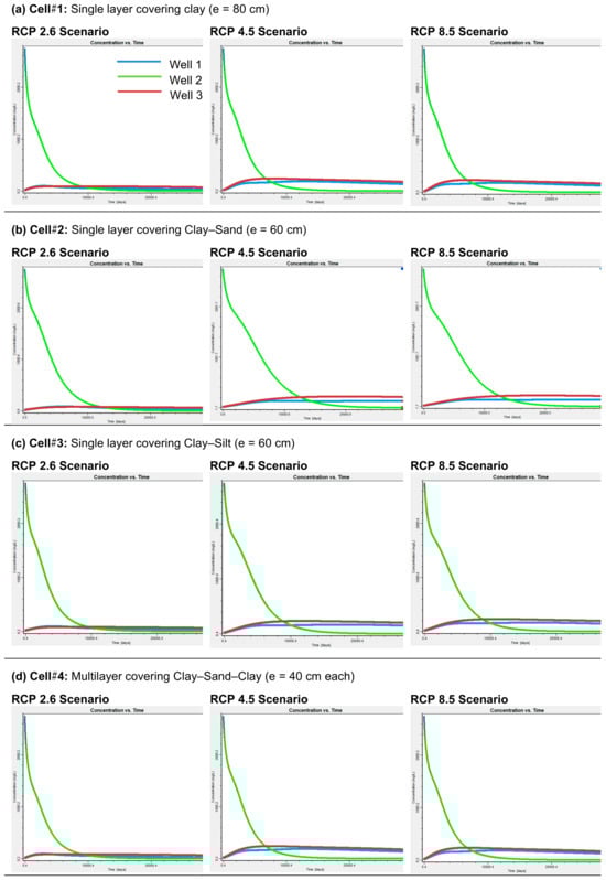 Many countries employ mining and ore processing techniques to concentrate and extract precious natural resources. However, the slow leaching of numerous dissolved elements and compounds from large quantities of waste rock and mine tailings can significantly threaten groundwater quality in the affected region. When exposed to oxygen and water, sulfide minerals in mine tailing oxidize, potentially forming acid mine drainage (AMD). Various reclamation techniques can inhibit AMD generation, including monolayer cover combined with an elevated water table (EWT), hydraulic barrier, and cover with capillary barrier effect (CCBE). Selecting the most suitable technique requires consideration of site-specific hydrogeological conditions (e.g., water table depth) and available cover materials. Numerical modeling tools such as PHT3D and MT3D can help identify optimal reclamation methods during preliminary planning stages. The 119-hectare Quémont 2 mine site near Rouyn-Noranda city will undergo reclamation following the closure of its tailings storage facilities (TSF). A three-dimensional numerical groundwater and solute-transport model were constructed and calibrated to simulate the site’s hydrogeological behavior post-closure, enabling selection of the most effective AMD control technique. Subsequently, a three-dimensional multicomponent reactive transport model incorporating various cover designs was developed, with simulations considering climate change impacts. The PHT3D model code, which integrates the PHREEQC geochemical model with the MT3D three-dimensional transport simulator, was employed to evaluate cover performance on the Quémont 2 TSF. Four reclamation configurations were tested: Cell #1 (80 cm single-layer clay cover), Cell #2 (60 cm single-layer clay-sand cover), Cell #3 (60 cm single-layer clay-silt cover), and Cell #4 (120 cm multilayer clay-sand-clay sequence). Simulations were conducted under various climate change scenarios (Representative Concentration Pathways—RCPs 2.6, 4.5, and 8.5). This paper describes the numerical model, cover materials, and modeling results both with and without covers. Results indicate that Cells #1 and #4, completely reduced sulfate in groundwater, suggesting these configurations would provide the most effective reclamation solutions for the Quémont 2 mine site.