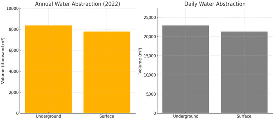 These graphs in Figure 6 highlight the relative predominance of groundwater abstraction over surface intake. While both sources demonstrate stable operation, a moderate reliance on groundwater is evident, which may support higher resilience during surface water shortages.