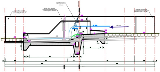 In response, a comprehensive modernization project has been initiated under the cross-border FloodUZH program. This project—conducted in partnership between Ukrainian and Slovak water management authorities—aims to upgrade Uzhhorod’s hydrotechnical infrastructure to simultaneously reduce flood hazards and improve low-flow conditions. The core engineering intervention is the construction of a new regulating weir (low-head dam) on the Uzh River, upstream of the city center (near Bozdos’kyi Park). According to the EIA, the proposed structure is a two-section segment gate weir with an adjustable flap designed to impound water during drought periods while allowing high discharges [5]. Crucially, the design integrates a fish passage facility to maintain longitudinal connectivity for aquatic fauna and a bottom sluice (bed regulator) to periodically flush sediment and prevent. These features were included to meet strict environmental constraints—namely preserving the river’s biodiversity and water quality—as stipulated by ecological experts. The EIA conclusion emphasizes that maintaining a stable water level in dry seasons will support the river’s biota and urban landscape, but only if fish migration routes are upheld and the thermal and oxygen regimes of the water are not. In addition to the weir, the project encompasses reinforcement of the Uzh’s banks and existing flood defenses along the city reach. Approximately several kilometers of riverbank will be strengthened with modern revetments (e.g., rip-rap and renewed stone lining), tied into walking paths and maintenance roads for dual. A particularly vulnerable section of the right bank levee (along Students’ka Embankment) is slated for local reconstruction [6]. These structural measures are constrained by a requirement to avoid encroachment into the river’s natural channel where possible and to respect the 30–50 m riparian buffer that hosts valuable green spaces and protected trees. Thus, the modernization plan represents a balance between engineered flood control and environmental stewardship, informed by a robust impact assessment.