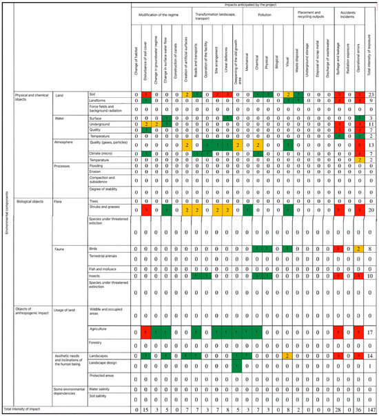 - Leopold, L.B.; Clarke, F.E.; Hanshaw, B.B.; Balsley, J.R. A Procedure for Evaluating Environmental Impact; U.S. Geological Survey: Washington, DC, USA, 1971; Volume 645, pp. 1–13. [Google Scholar]