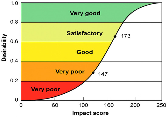 In parallel, the Harrington desirability function was utilized to evaluate the cumulative environmental impact, including potential accidental events and temporal dimensions (short-, medium-, and long-term consequences). This method enabled us to generate composite scores that informed the sustainability ranking of proposed interventions.
