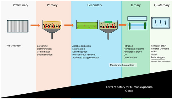 - Krzeminski, P.; Tomei, M.C.; Karaolia, P.; Langenhoff, A.; Almeida, C.M.R.; Felis, E.; Gritten, F.; Andersen, H.R.; Fernandes, T.; Manaia, C.M.; et al. Performance of Secondary Wastewater Treatment Methods for the Removal of Contaminants of Emerging Concern Implicated in Crop Uptake and Antibiotic Resistance Spread: A Review. Sci. Total Environ. 2019, 648, 1052–1081. [Google Scholar] [CrossRef] [PubMed]
