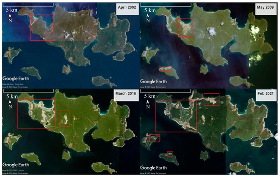 Coral distribution changes were influenced by various factors, including anthropogenic pressures, land-use change, water quality degradation (e.g., sedimentation and nutrient enrichment), rising sea temperatures, and crown-of-thorns starfish outbreaks. Among these, land-use change—particularly from long-term landfill activities—emerged as the dominant driver of coral loss. For the purpose of supporting coral reef conservation and recovery, this study proposes a community-based management framework focused on protecting existing coral habitats and restoring degraded areas through targeted, site-specific interventions.