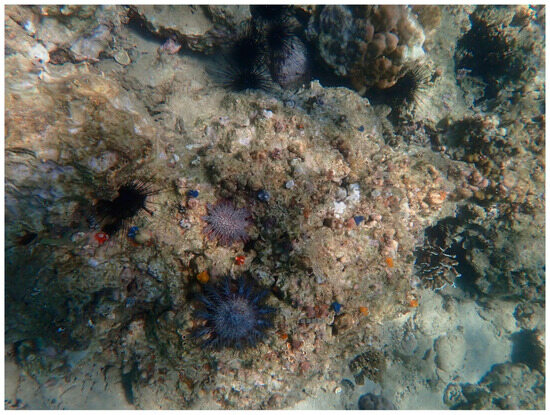 - Hodgson, G.; Hill, J.; Kiene, W.; Maun, L.; Mihaly, J.; Liebeler, J.; Shuman, C.; Torres, R. Reef Check Instruction Manual: A Guide to Reef Check Coral Reef Monitoring; Reef Check Foundation: Pacific Palisades, CA, USA, 2006; p. 93. [Google Scholar]