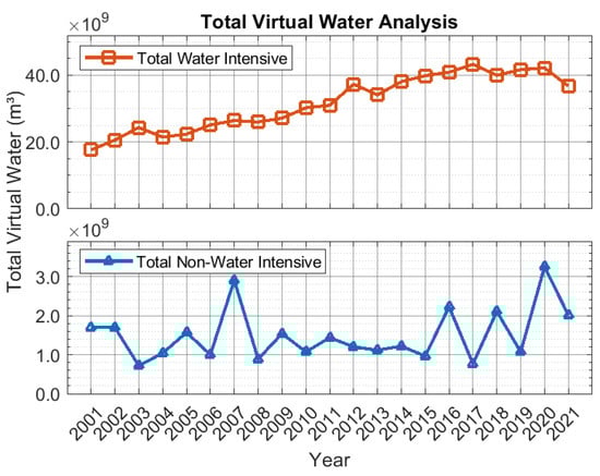 3.3. Total Virtual Water Consumption Trend (2001–2021)