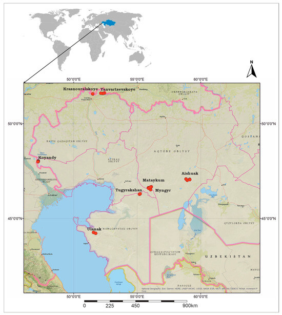 - Adenova, D.; Sapargaliyev, D.; Sagin, J.; Absametov, M.; Murtazin, Y.; Smolyar, V. Assessing Groundwater and Soil Quality in West Kazakhstan amid Climate Impacts and Oil Industry Contamination Risks. Sci. Rep. 2025, 15, 6663. [Google Scholar] [CrossRef] [PubMed]