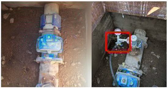• FF121 AM System (Fluid Force). This system comprised four rectangular magnets (162 mm × 150 mm × 55 mm), encased in plastic covers and arranged around an 8-inch PVC pipe. Their north poles faced the center, creating mutual repulsion. As shown in Figure 1, this system—installed by JMAS in Quinta Versalles—featured direct surface contact between the magnets and the pipe exterior, although the magnets did not interact with the water;