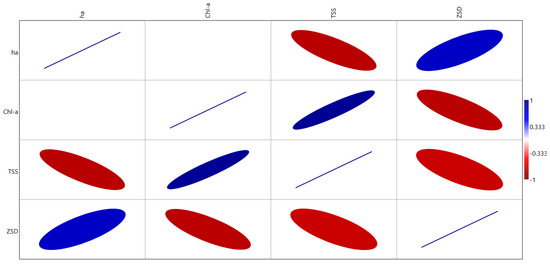 Initially, following the implementation of the Shapiro–Wilk test (Table 2), it was ascertained that the sole normal variable is the ZSD. The statistical analysis indicated that suspended solids and chlorophyll-a did not meet the criteria for statistical normality. Given the seasonal patterns of the lake, as determined by the available database, it was hypothesised that the elevated values of these variables on 6 November 2022 were the primary cause.