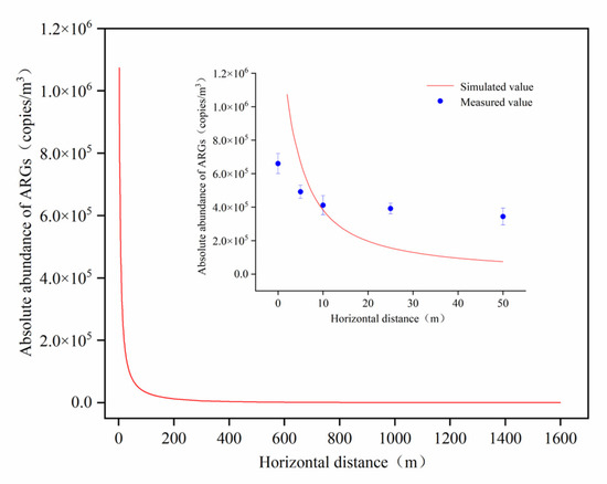 Simulation and actual monitoring values of ARG abundance diffusion downwind of aeration tank.