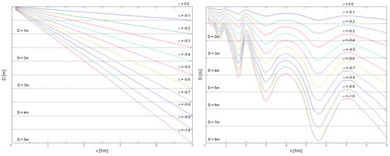 where indicates differentiation at . Given the previously adopted assumptions (mainly small vertical variability and a gentle bottom slope), the second term on the right-hand side of Equation (24) is omitted in numerical computations. In analytical solutions of the model equations, transformation to the system primarily serves for better visualization of results.