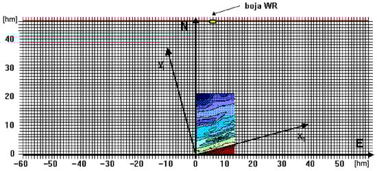 Modeling flows in shallow-water areas necessitates transforming the coordinate system from () to (), where the vertical distance is expressed as a fraction of the total depth. This avoids situations where numerical grid nodes fall outside the study area—i.e., below the seabed, which would occur with a constant water layer thickness in the () system (see, e.g., []). The “new” coordinate is typically defined as follows: