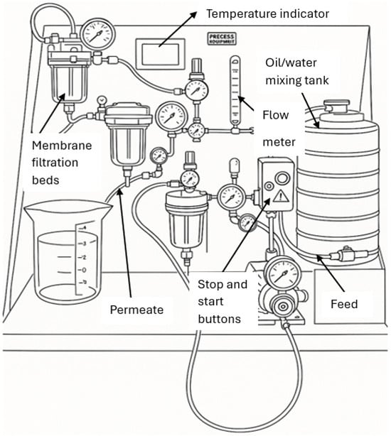 If discharged untreated, oily wastewater can create surface films that reduce oxygen transfer in water bodies and increase chemical oxygen demand, with detrimental effects on marine life. Given that more than 80% of industrial wastewater globally is released without adequate treatment, there is a pressing need for effective water recovery solutions that can remove oils and greases [11,12]. Developing such solutions is not only an environmental imperative but also a strategic response to global water scarcity—by recovering usable water from contaminated streams, industries can alleviate pressure on freshwater supplies and support sustainable water reuse [13,14,15]. Membrane filtration is a widely applied technology for oil–water separation, valued for its ability to produce high-quality effluent. However, conventional membrane systems face significant challenges that hinder long term performance and sustainability [16,17]. A major issue is membrane fouling: oil droplets and emulsified hydrocarbons tend to accumulate on the membrane surface and inside its pores, gradually blocking the flow paths [18,19].