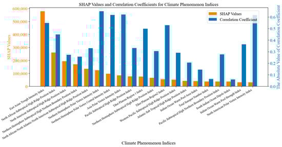 The top twenty influential factors identified by XGBoost-SHAP at the Tobolsk station for simulations with a leading time of one month are shown in Figure 11. Some climatic indices, such as the North African Subtropical High Ridge Position, have been demonstrated to influence precipitation and runoff in the study area in previous studies [50]. However, the individual effects of other climatic phenomena indices (CPIs) on precipitation and runoff in Central Asia have yet to be elucidated individually. A more detailed and in-depth analysis of these predictors is presented in Section 5.2.