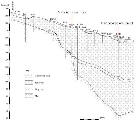 Hydrogeological cross-section of the Varaždin aquifer [59].