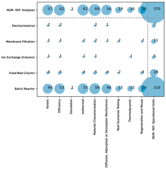 In conducting a systematic literature review on the operational units used for arsenic adsorption, we classified these systems based on their distinct operational mechanisms and application contexts. Each method offers unique approaches to arsenic removal, affecting adsorption efficiency, scalability, and suitability for various environmental and industrial settings. By organizing the literature into seven primary types of operational units—batch reactor, fixed-bed, ion exchange, chemical precipitation, membrane filtration, electrochemical treatment, and coagulation and flocculation—this review enables a focused and comparative analysis of the effectiveness and limitations inherent to each method.