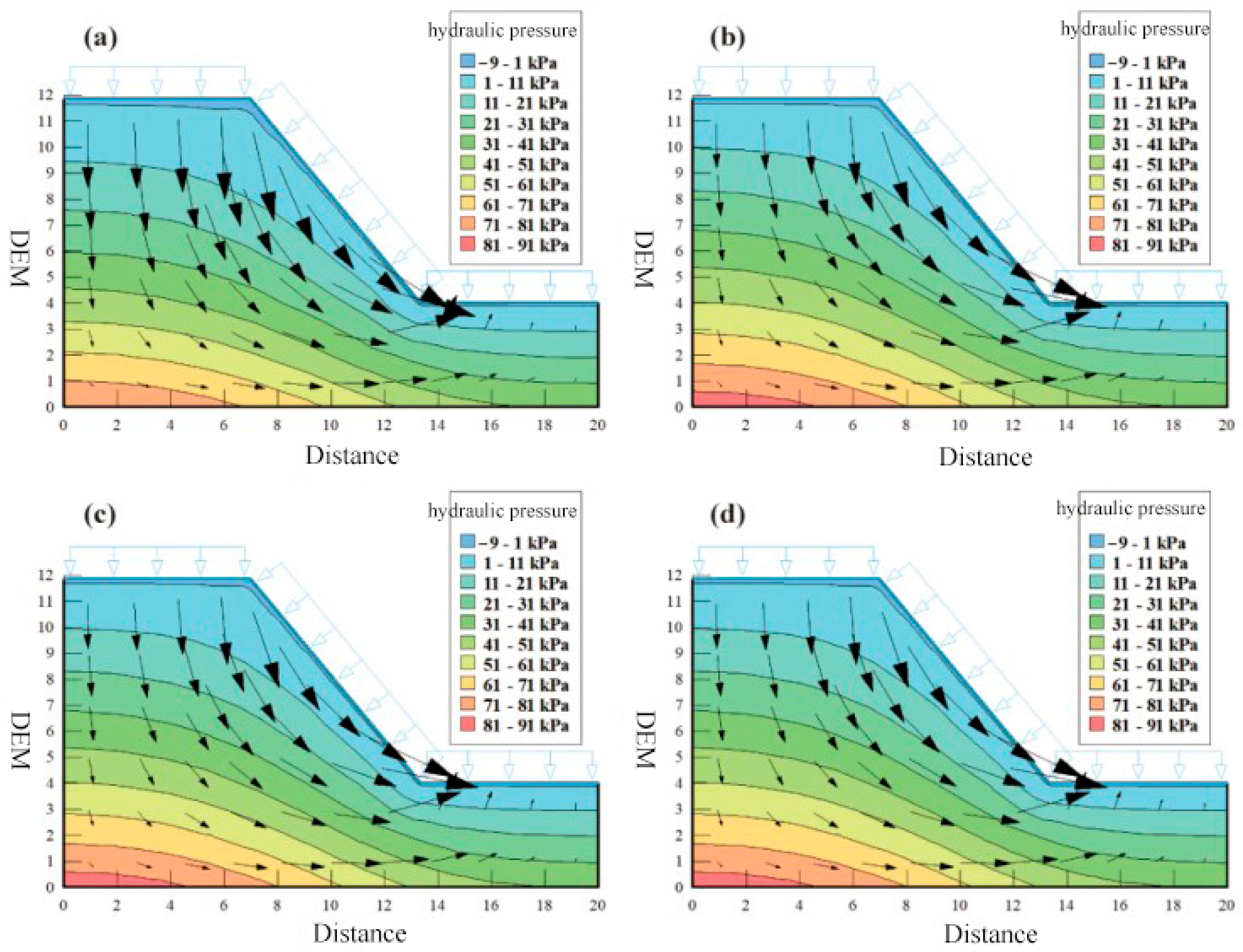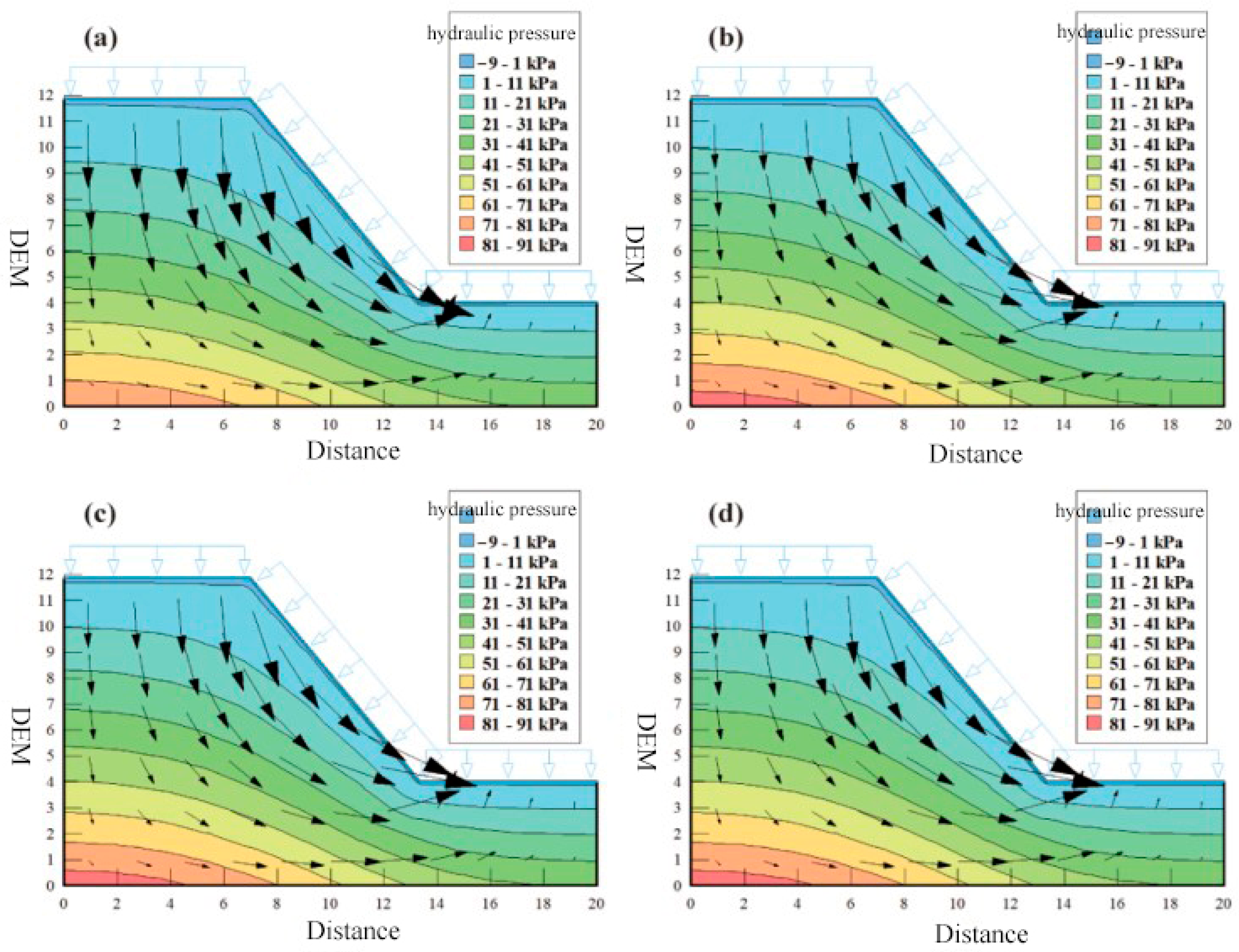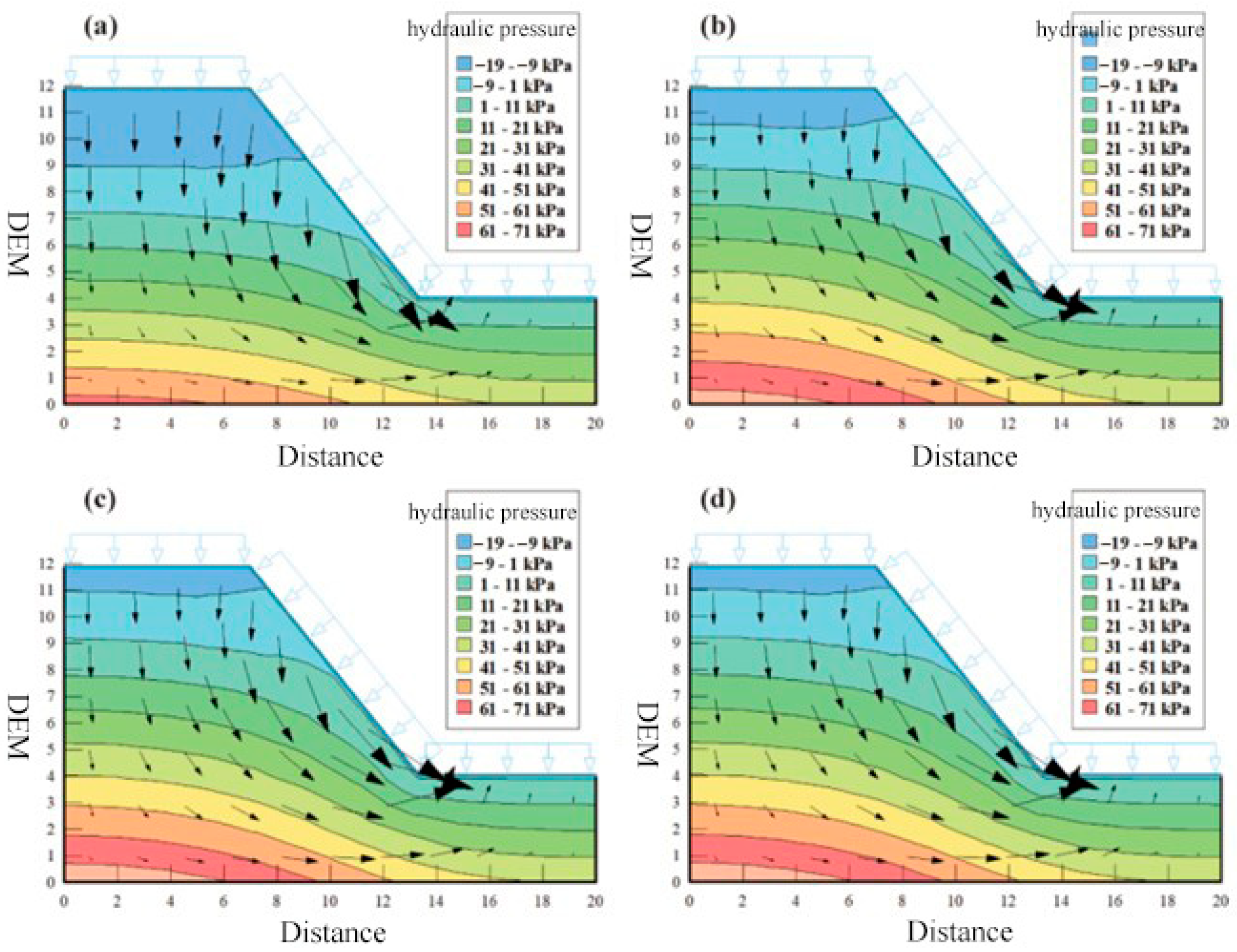 - Shi, Z.M.; Shen, D.Y.; Peng, M.; Zhang, L.L.; Wang, F.; Zhene, X. Slope stability analysis considering rainfall infiltration in multi-layered unsaturated soil. J. Hydraul. Eng. 2016, 47, 977–985. [Google Scholar]